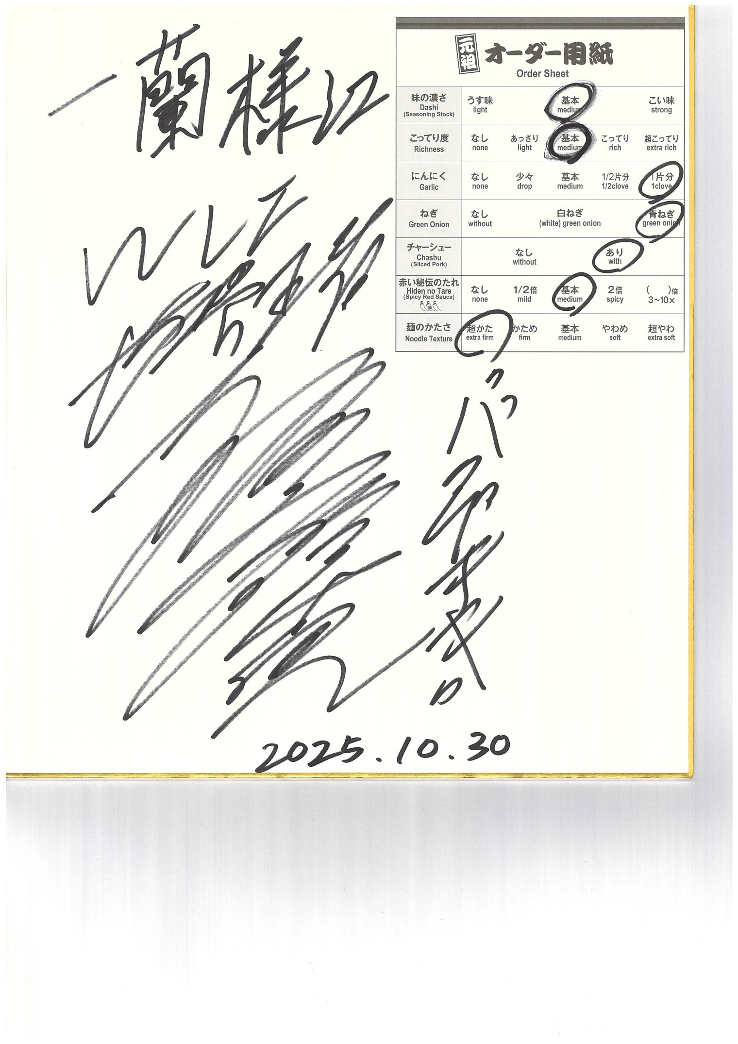 | 2025/04/02 | マサル様 が一蘭をご紹介くださいました! |